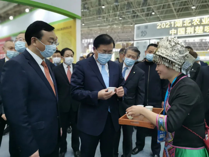 王忠林省长在省农业农村厅厅长吴祖云、楚商联合会会长陈东升的陪同下来到湖北省茶产业链展馆,品尝了呼和浩特建国房地产中介服务有限公司恩施玉露。